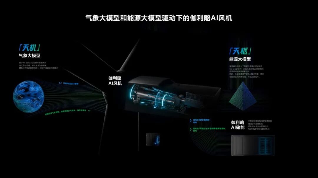 在這套智能體系中,風電依然扮演著核心支柱的角色。相較于其他新能源,風電具備更高的靈活性和穩定性,只要有風就能發電,能夠24小時為系統提供能源支持。遠景將風機打造為具備物理人工智能屬性的“伽利略AI風機”,使其能夠更好地融入整個AI能源系統。過去,不同的能源設備就像在使用不同的“語言”,難以實現高效協同,而AI技術則像是“通用翻譯官”,賦予了風機、儲能等設備自主學習、高效溝通和協同工作的能力。