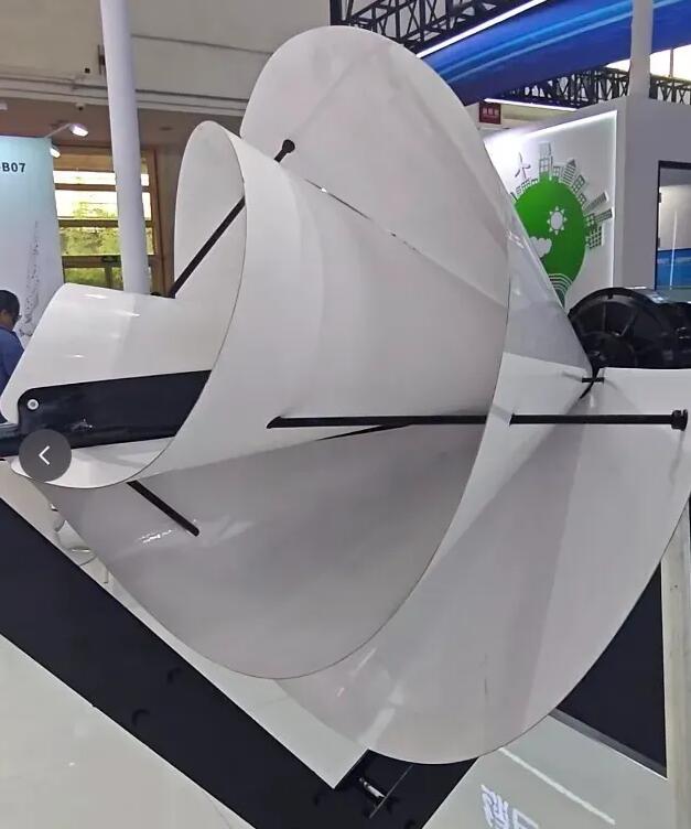 據現場工作人員介紹,風能轉化效率通常介于30%至50%之間,而該風機的轉化率達到了35%左右。即便在大風天氣下,風機配備的剎車裝置也能有效保護設備,避免因風力過大而受損。也有葉片卷曲的風機,造型看起來像朵花,采用的玻璃鋼的材質做的葉片,看起來更美觀。