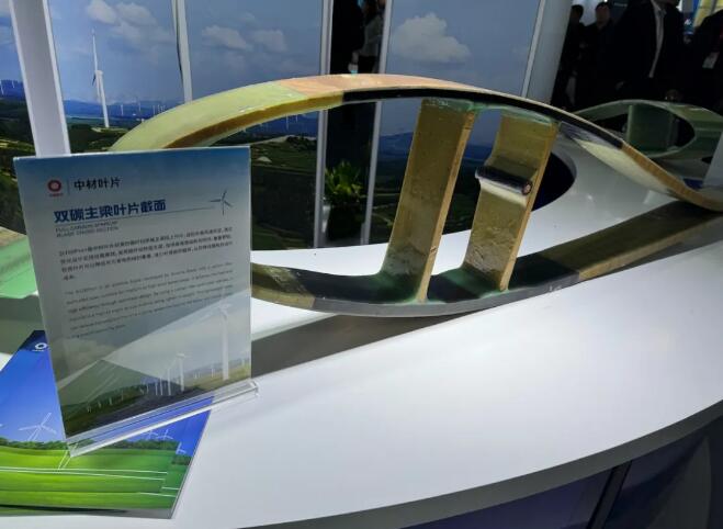 在此次展會中,葉片廠商集中展示了多款針對海上風電的葉片產品,為降低海上風電成本,葉片廠商在材料選擇上頗費心思,采用半碳纖維半玻璃纖維的復合結構,既減輕了重量,又降低了成本。
