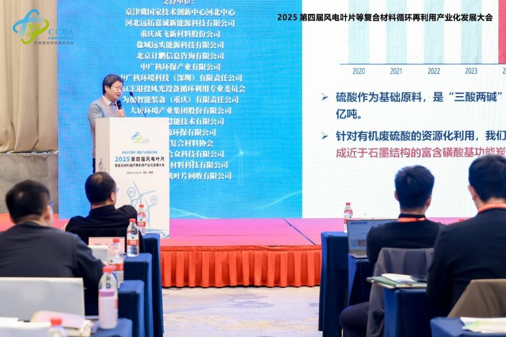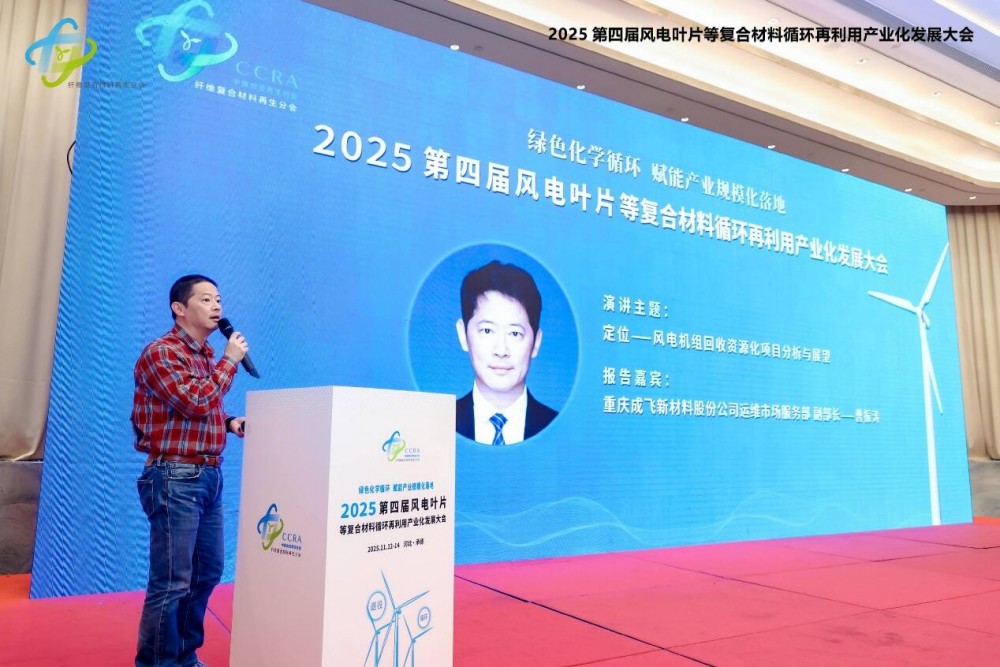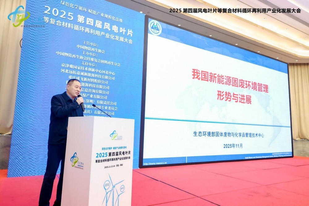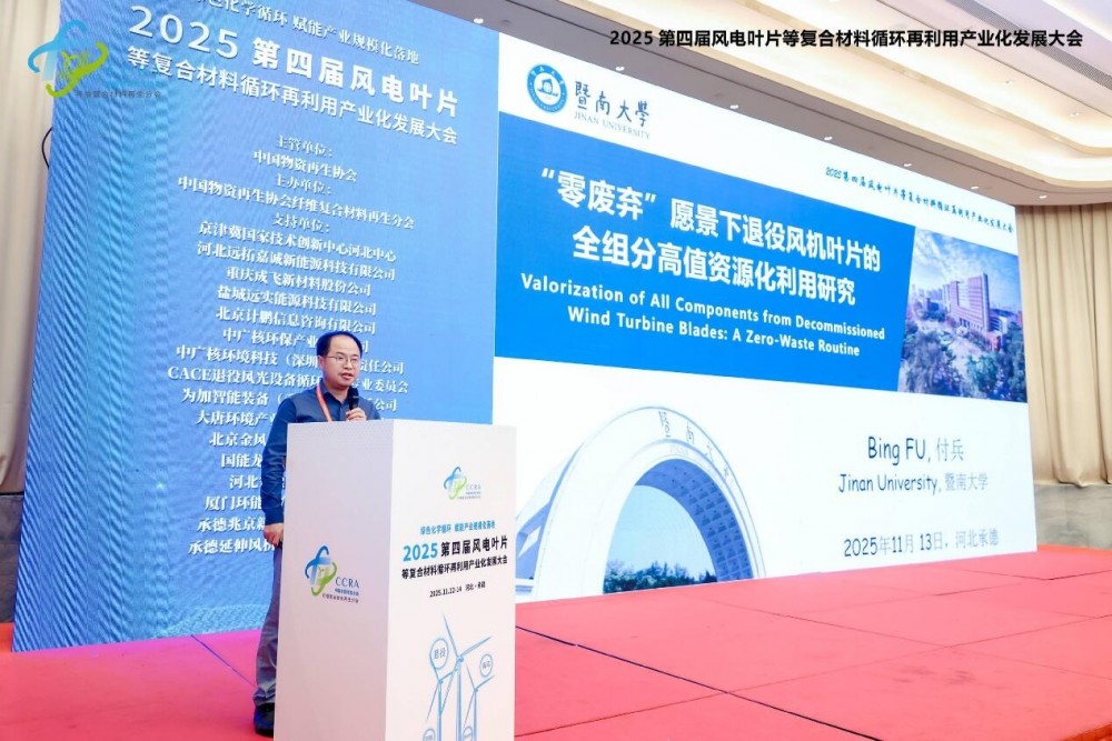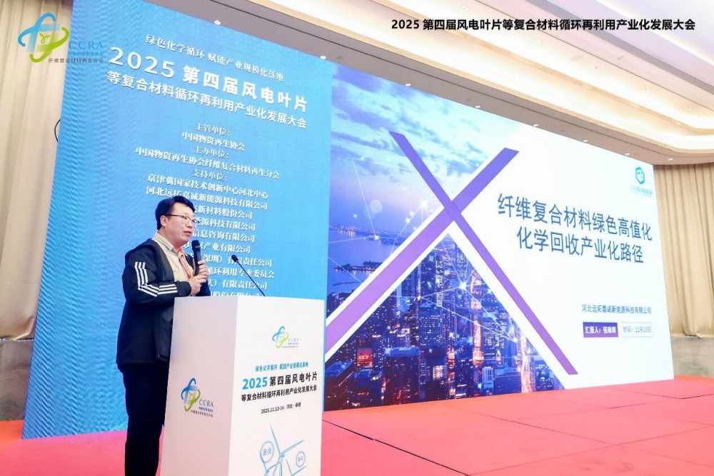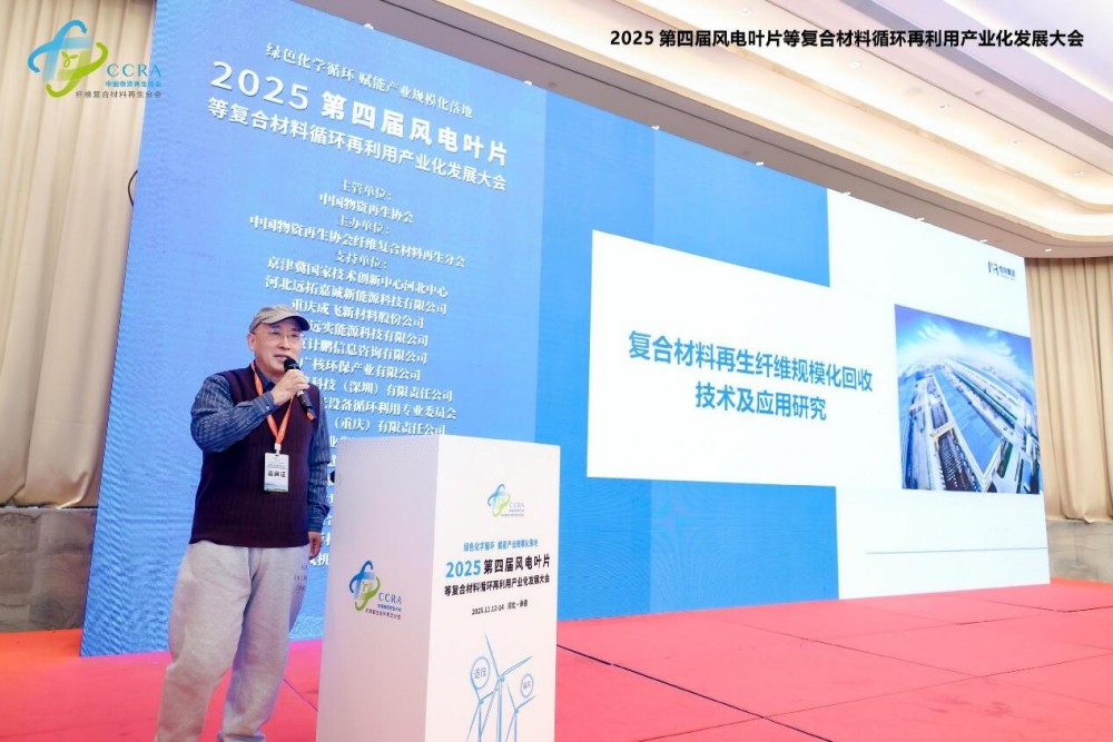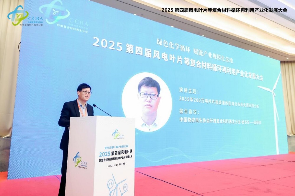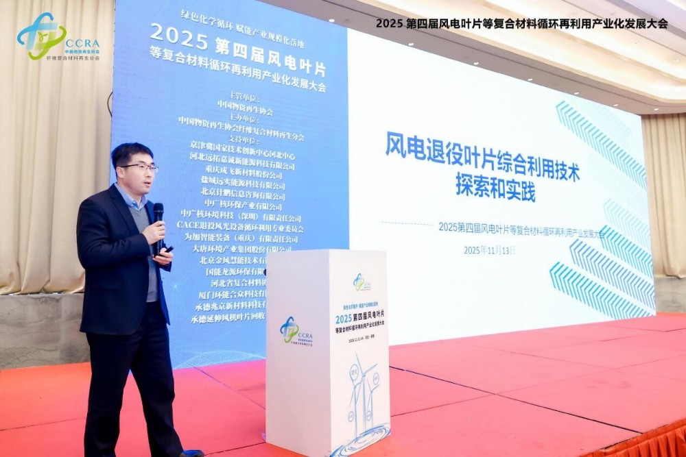 2025年11月12日至14日,由中國物資再生協會纖維復合材料再生分會主辦的"2025第四屆風電葉片等復合材料循環再利用產業化發展大會"在河北省承德市圓滿舉行。本屆大會以"綠色化學循環,賦能產業規模化落地"為主題,著力構建從退役處置到資源再生的全產業鏈解決方案,推動復合材料固廢產業化進程邁上新臺階。