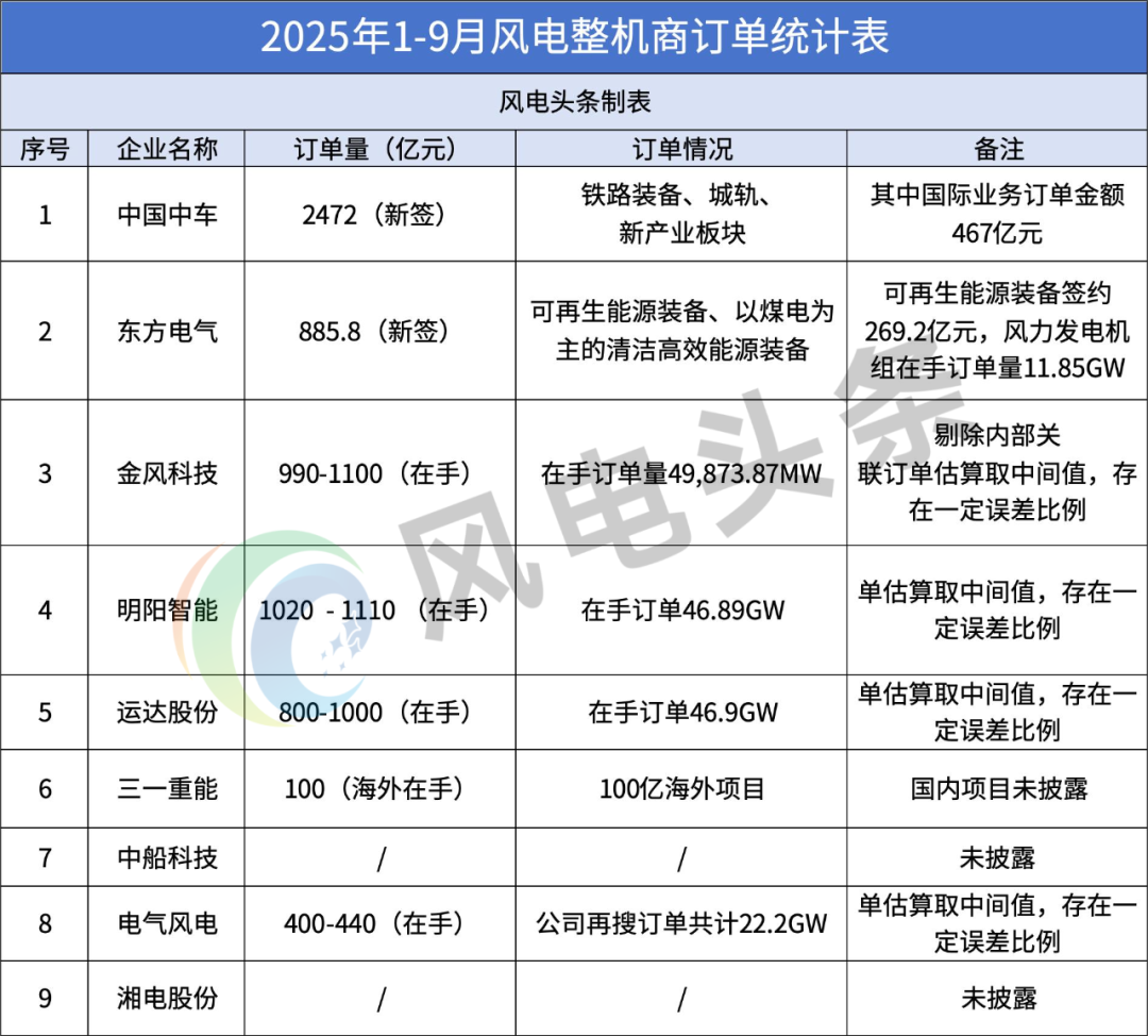 接下來,風電頭條將從6大維度深入拆解,帶你看清風電整機商的 “前三季度答卷”。