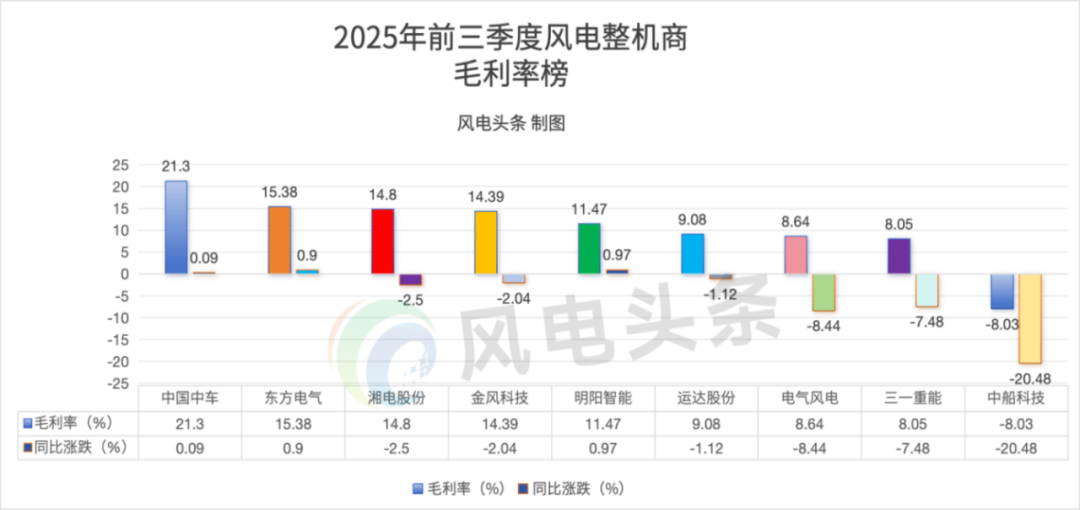 中國中車、東方電氣、湘電股份、金風科技、明陽智能5家公司的毛利率保持在10%以上。
