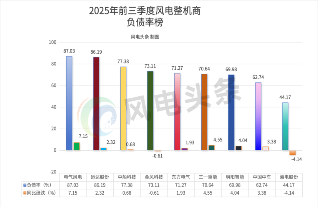 資產負債率偏高是因為整機廠商在海上風電、儲能等新業務布局需大量資金,部分企業通過債務融資支持發展,無形中推高了資產負債率。