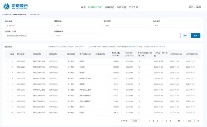 風電頭條獲悉,11月24日,黑龍江公示2025-2026年度機制電價競價出清結果。
