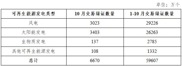 2025年10月,風電交易綠證3023萬個,1-10月風電交易綠證29226萬個。