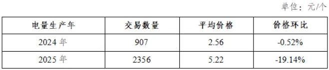 2025年10月,電量生產年為2024年的綠證單獨交易平均價格2.56元/個,電量生產年為2025年的綠證單獨交易平均價格5.22元/個。