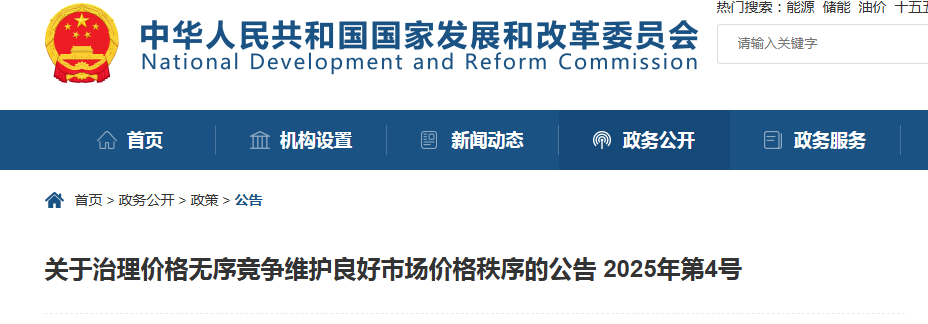 為貫徹中央財經委員會第六次會議精神,落實《關于治理價格無序競爭 維護良好市場價格秩序的公告》(國家發展改革委 市場監管總局公告2025年第4號)有關要求,11月24日,國家發展改革委會同有關部門及相關行業協會召開會議,研究制定價格無序競爭成本認定標準等相關工作。