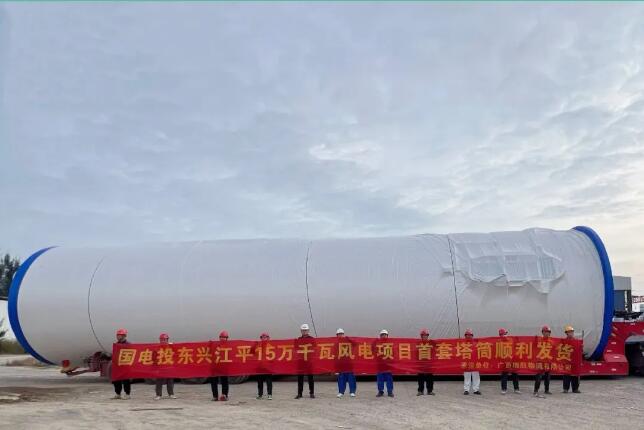 11月28日,由中船集團旗下中船廣西公司承制的東興江平15萬千瓦風電塔筒項目首套塔筒順利完成發貨、吊裝,標志著該項目制造工作取得階段進展。