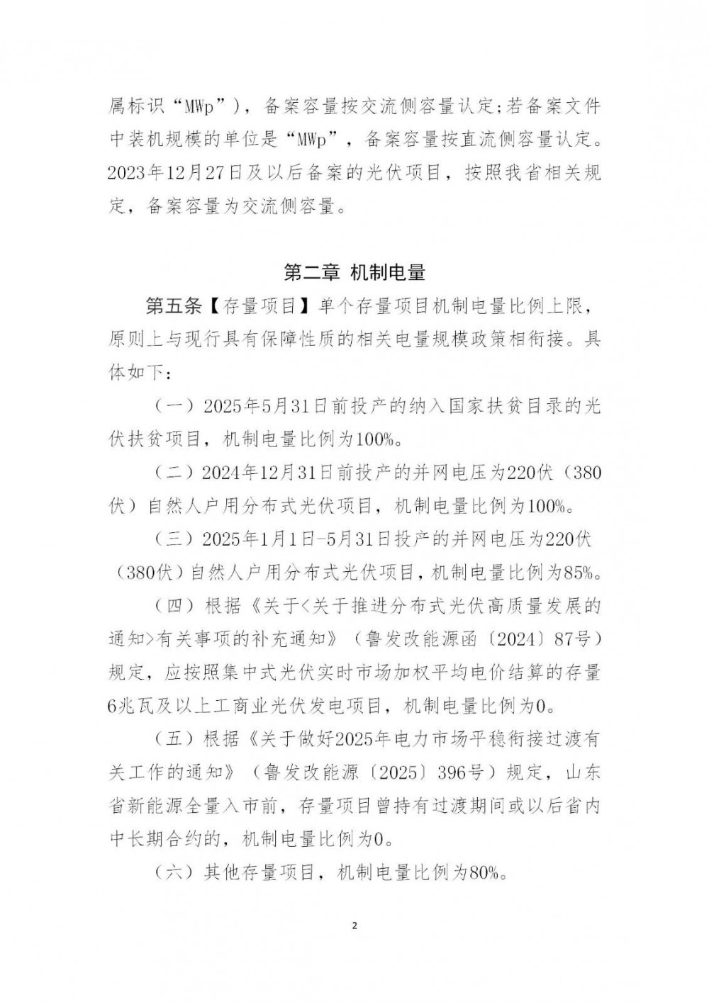 (五)根據《關于做好2025年電力市場平穩銜接過渡有關工作的通知》(魯發改能源〔2025〕396號)規定,山東省新能源全量入市前,存量項目曾持有過渡期間或以后省內中長期合約的,機制電量比例為0。