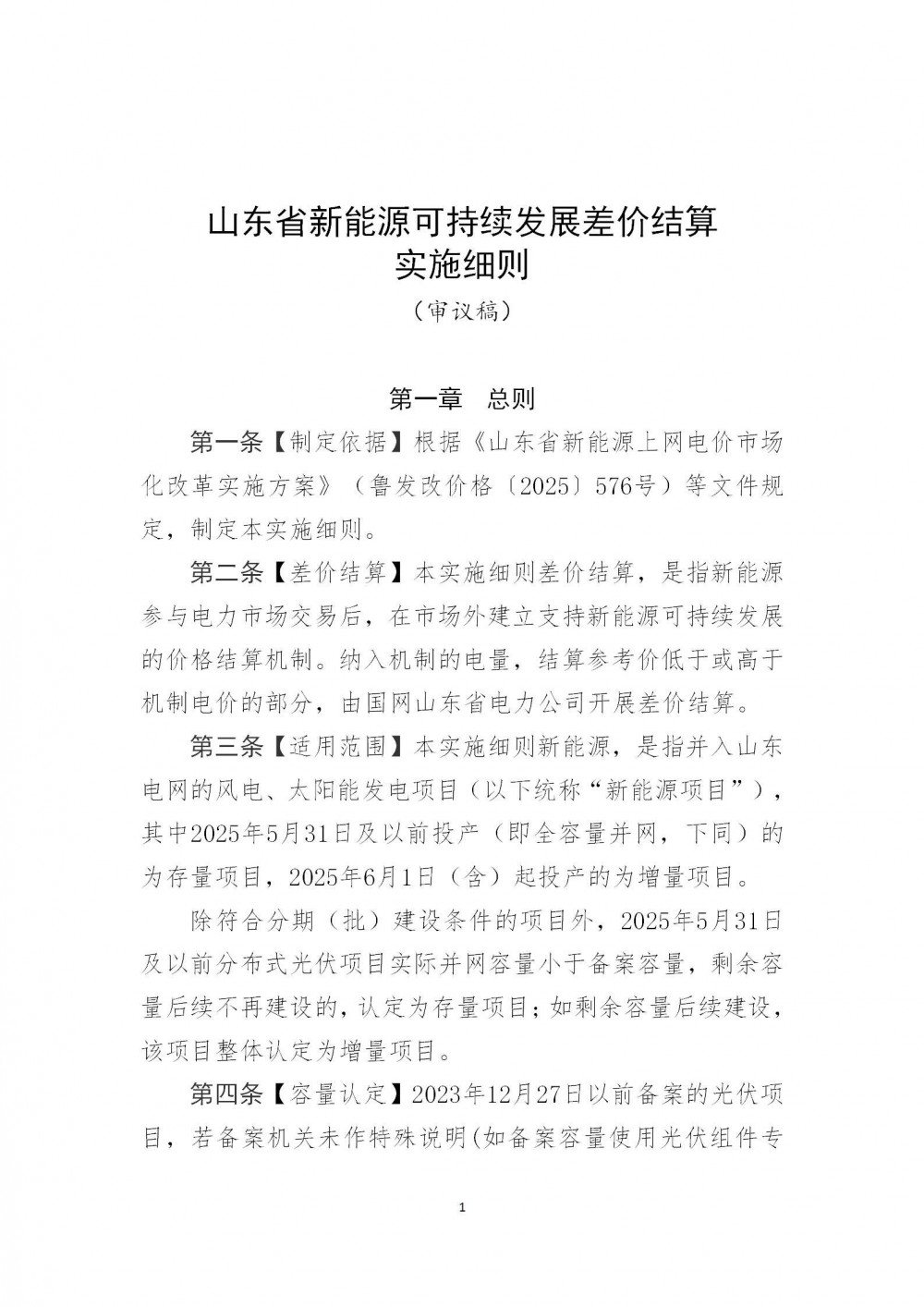 根據《山東省新能源可持續發展差價結算實施細則(征求意見稿)》: