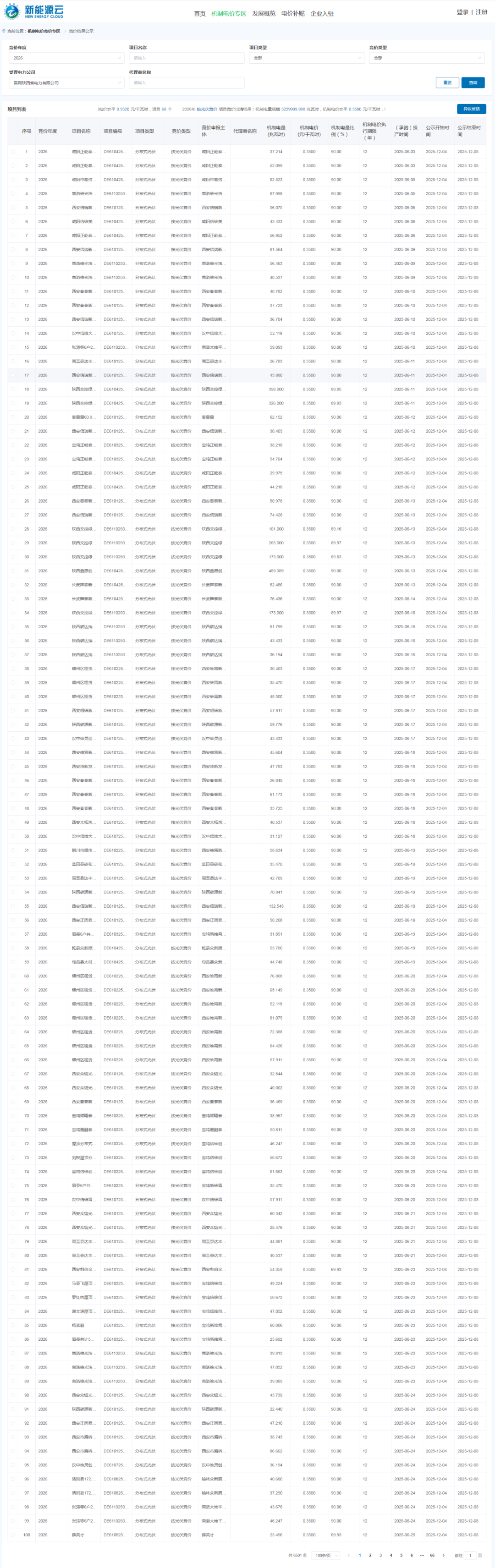 據了解,11月10日,國網新能源云公示《2025-2026年陜西省增量新能源項目機制電價競價組織公告》。