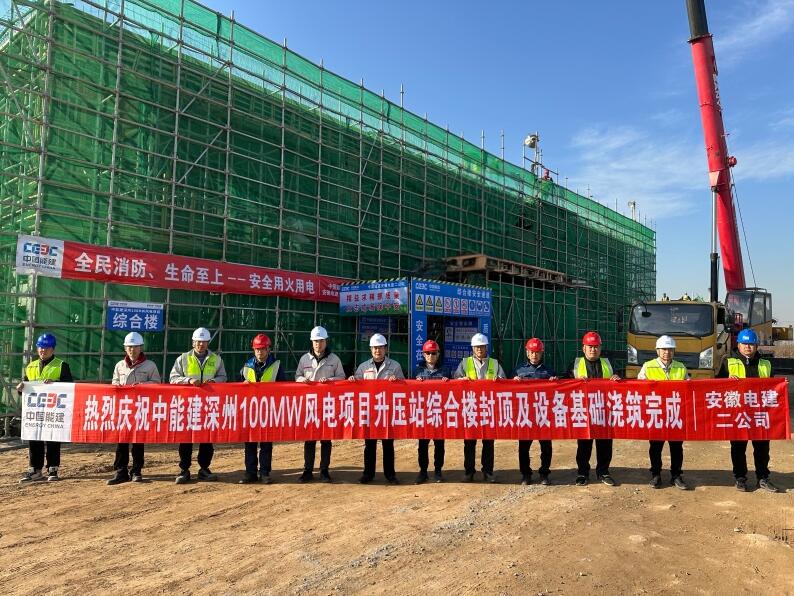 近日,中國能建安徽電建二公司EPC總承包的河北深州100兆瓦風電項目升壓站綜合樓、輔助用房順利封頂,標志項目正式從基礎施工邁入電氣安裝關鍵期。