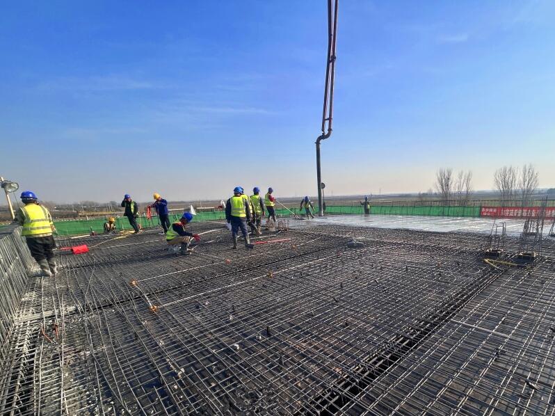 220千伏升壓站作為項目電能匯集、升壓、送出的核心樞紐,承擔著保障電力安全穩定輸送的重要使命。其中綜合樓總建筑面積達1100余平方米,采用框架結構設計,共2層,高度為8.85米,集主控室、辦公住宿一體化。此次共澆筑混凝土350立方米。