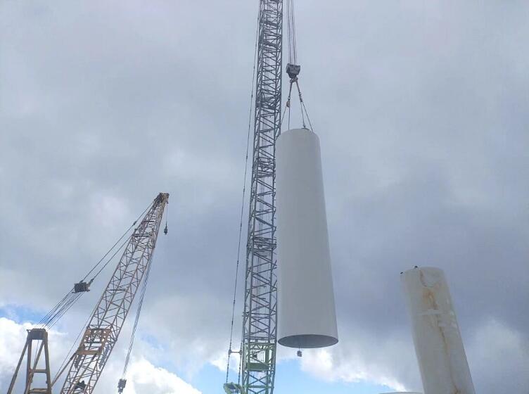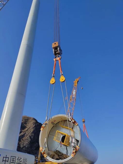 風機塔筒重達百噸,葉片長度超85米,宛如一個個龐然大物。而通往施工現場的盤山公路卻狹窄得如同羊腸小道一般崎嶇蜿蜒,彎道密集得宛如迷宮。面對這一棘手難題,項目部量身定制施工方案,拓寬加固道路,優化運輸路線,全程跟蹤護送,最終成功將這些大型設備安全地運抵現場。