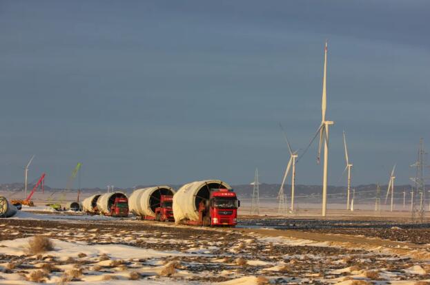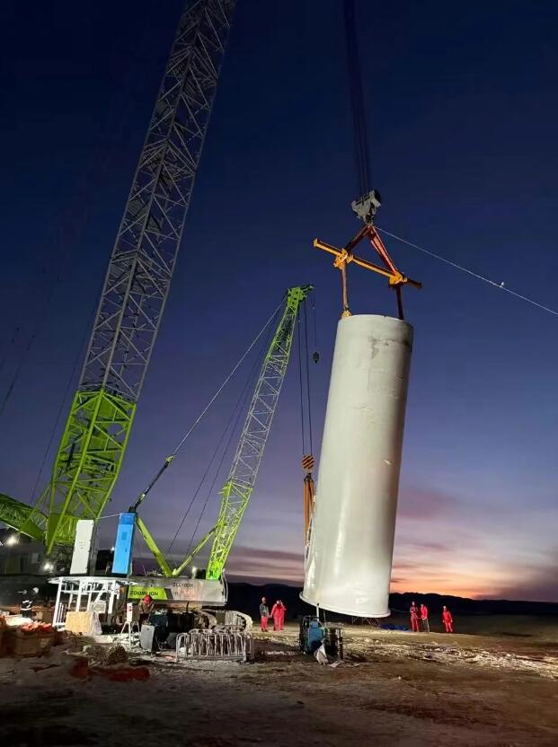 該項目位于阿勒泰地區吉木乃縣,規劃建設60萬千瓦風電與20萬千瓦光伏,中油(新疆)工程公司與CPECC北京分公司聯合中標的二標段共40臺風機,分一區、二區建設,由中油(新疆)油建分公司完成的一區20臺風機單機容量7.5兆瓦,輪轂中心高度115米,葉輪直徑200米,整機重量約590噸。
