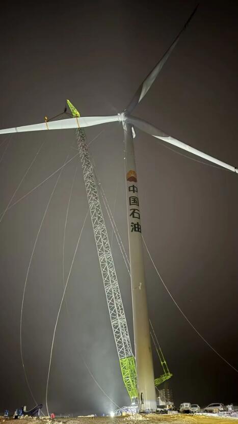 2025年12月5日,隨著7號風機最后一扇長97米、重達29噸的葉片在115米高空與輪轂精準對接,由中油(新疆)工程油建分公司承建的新疆油田阿勒泰吉木乃80萬千瓦風光發電項目風電(二標)一區20臺風機全部吊裝就位,標志著項目關鍵節點順利完成,為后續并網發電奠定堅實基礎。