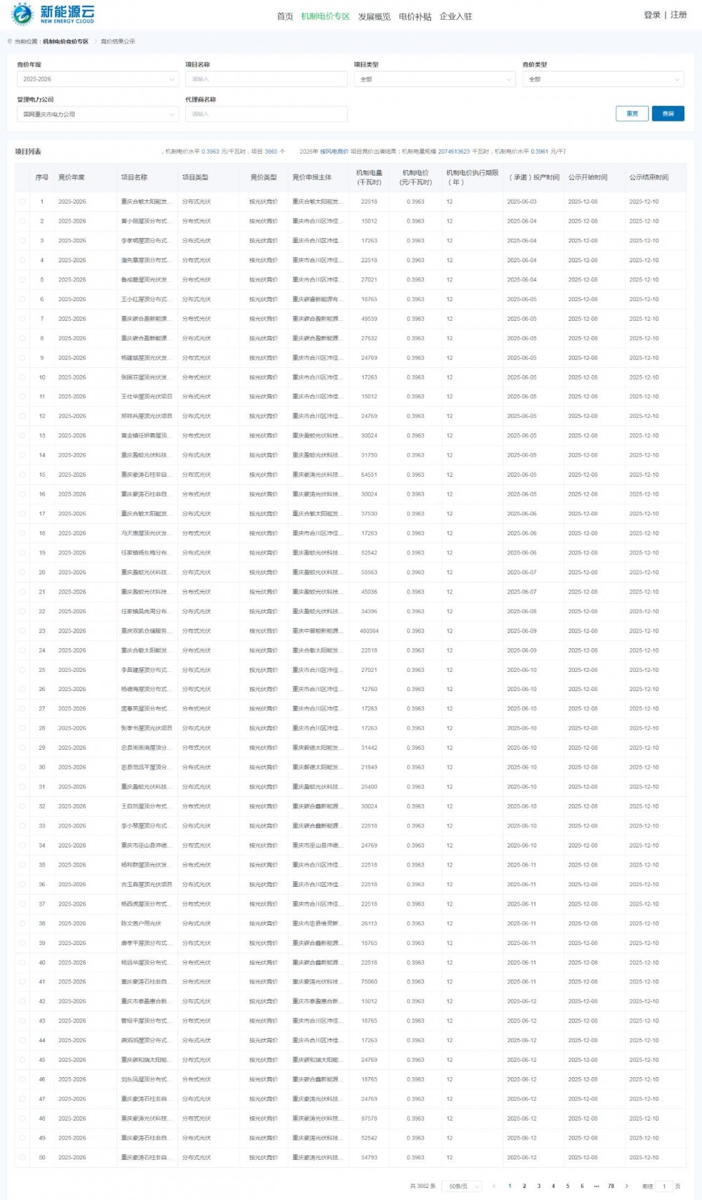 風電頭條獲悉,12月8日,重慶首輪增量新能源項目機制電價競價結果公示。