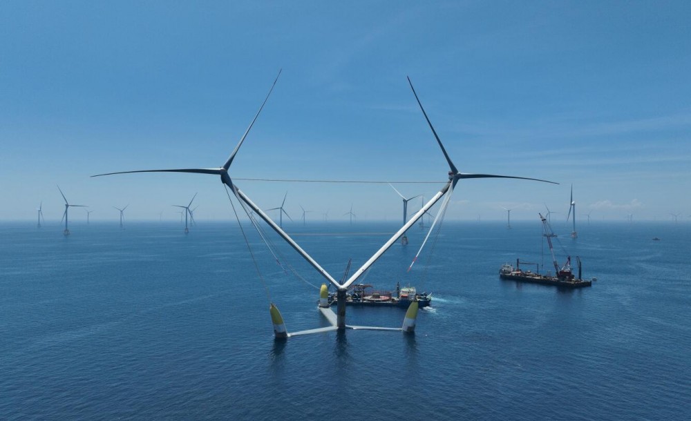 2024年12月,全球單機容量最大、技術最前沿的雙轉子漂浮式風電平臺——“明陽天成號”在廣東陽江海域正式并網發電,樹立了全球深遠海風電開發的新標桿。該項目主體于2024年8月完成海上施工,同年12月圓滿投運。