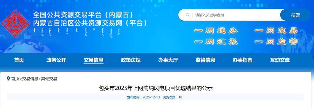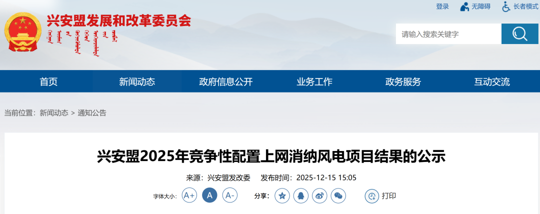 據悉,11月9日,內蒙古能源局發布《關于開展2025年上網消納風電項目競爭性配置的通知》。