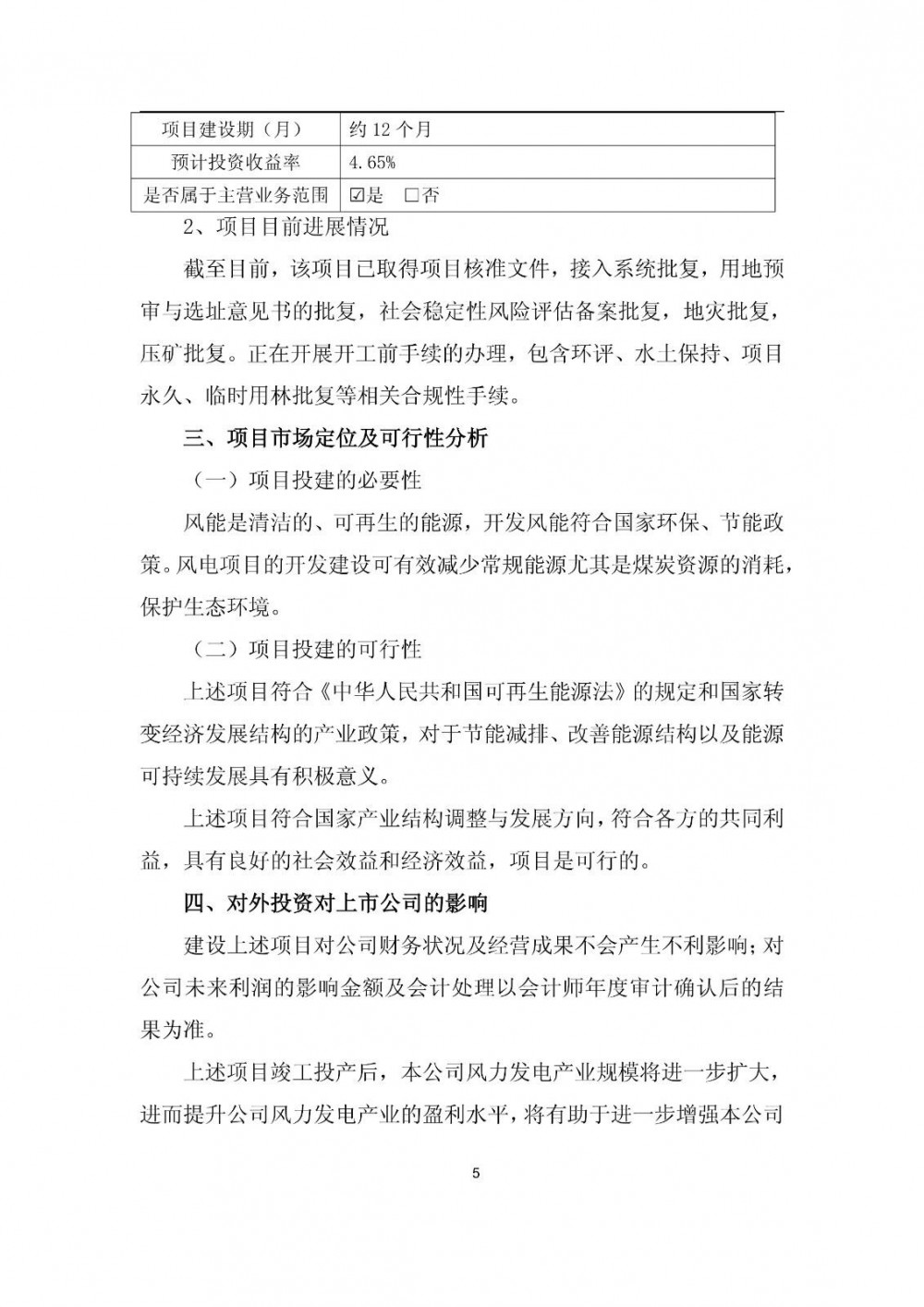 嘉澤新能表示,上述項目竣工投產后,公司風力發電產業規模將進一步擴大,進而提升公司風力發電產業的盈利水平,將有助于進一步增強公司的持續盈利能力。