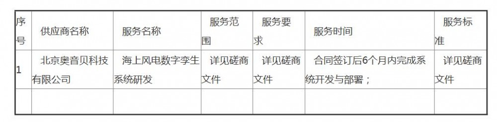 12月15日,自然資源部北海預報減災中心海上風電數字孿生系統研發項目成交公告發布,北京奧音貝科技有限公司中標,中標金額為51萬元。