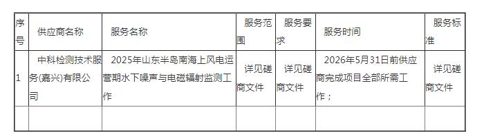 12月15日,自然資源部北海預報減災中心2025年山東半島南海上風電運營期水下噪聲與電磁輻射監測工作成交公告發布,中科檢測技術服務(嘉興)有限公司中標,中標金額為93.38萬元。