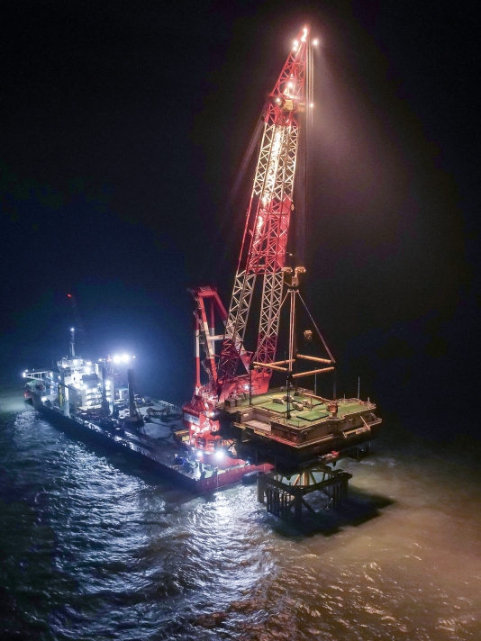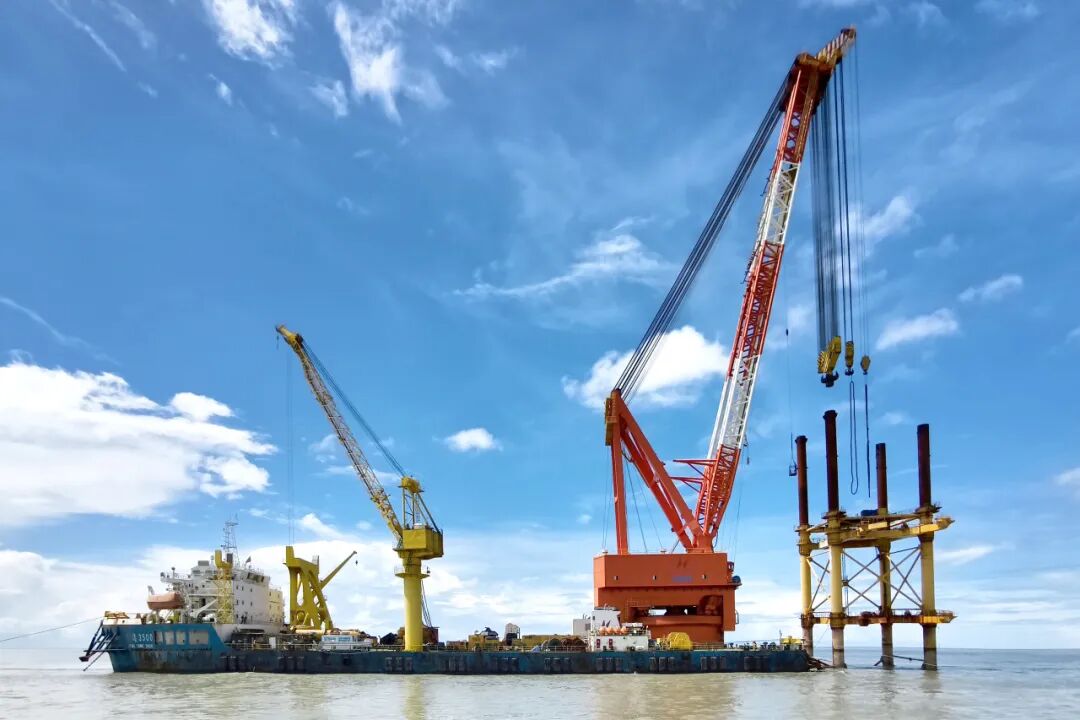 當升壓站插尖精準嵌入鋼管樁的剎那