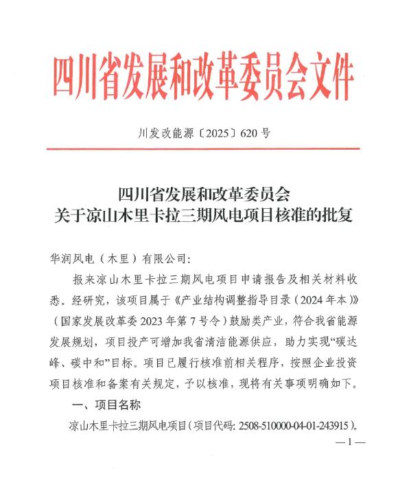 12月19日,華潤電力四川公司涼山木里卡拉三期10萬千瓦風電項目成功取得四川省發展和改革委員會核準批復,標志著華潤電力華中大區首個風光同場項目正式邁入實質性階段。