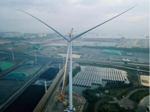 12月18日,北部灣港在防城港漁澫港區成功完成首臺分散式風電機組吊裝。該風機整機質量達648.88噸,單機容量達6.25兆瓦,安裝于防城港碼頭407生態池附近。此舉標志著集團在港口分散式風電領域取得實質性突破,為港口綠色低碳轉型和可持續發展格局的構建邁出了關鍵一步。
