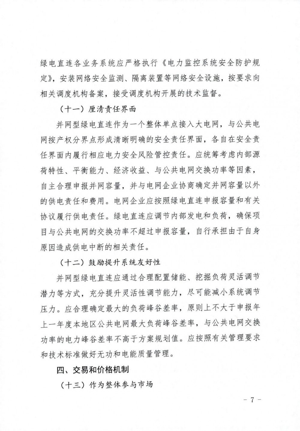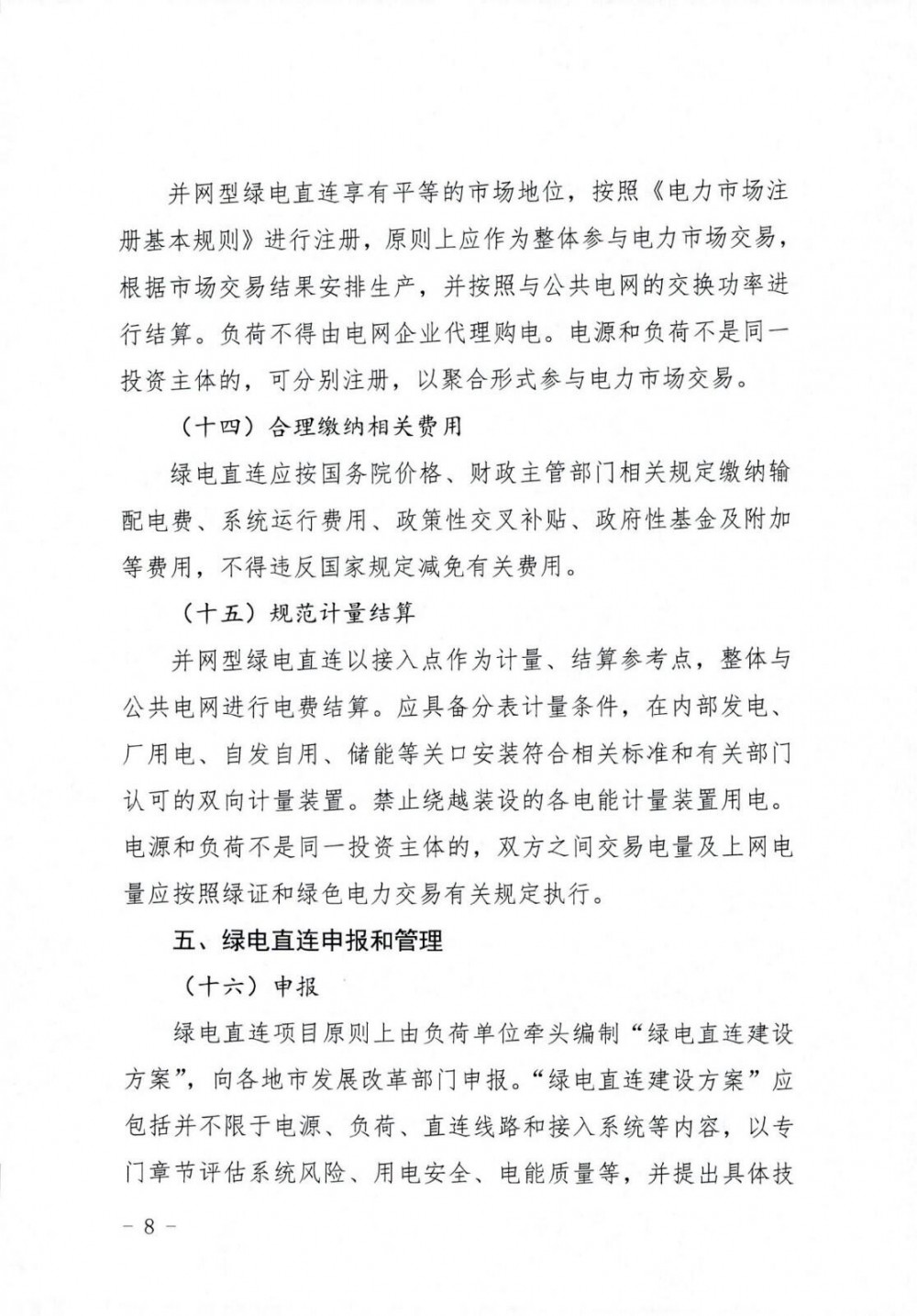 要求綠電直連應按照整體化方案統一建設,新能源、 新增負荷、儲能、直連線路等要按規定同步規劃、同步實施、 同步運行。