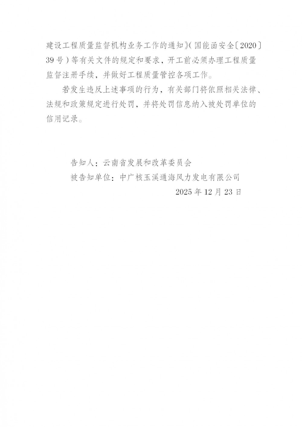 一、五垴山風電場(二期)項目已列入《云南省2024年第二批新能源項目開發建設方案》(云能源新能〔2024〕194號),項目建設符合云南省新能源實施計劃。為有效利用當地風能資源,提高區域供電能力,依據《云南省人民政府關于印發云南省企業投資項目核準和備案實施辦法的通知》(云政規〔2023〕2號)、《云南省發展和改革委員會關于印發規范風電項目核準管理有關事項的通知》(云發改能源規〔2023〕2號)等有關規定,同意建設五垴山風電場(二期)項目(項目代碼:2502-530000-04-01-664740)。項目單位為中廣核玉溪通海風力發電有限公司。