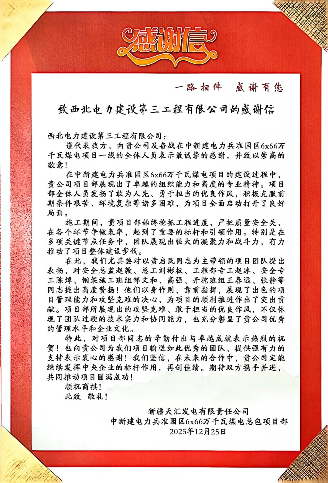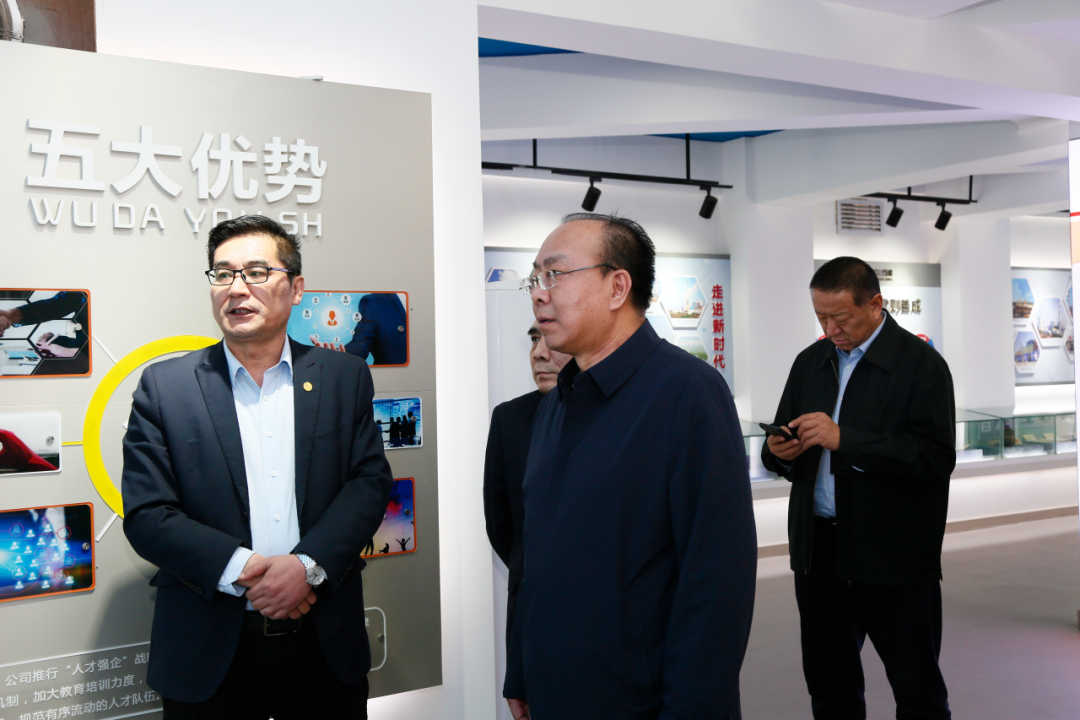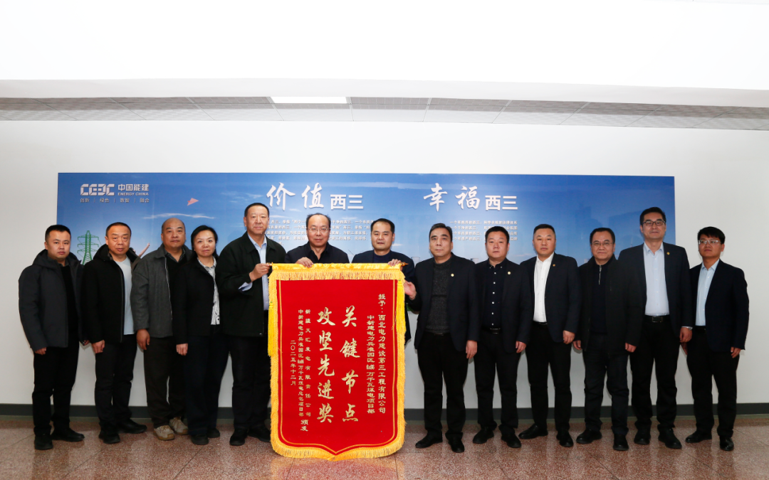 張國勝代表中新建電力集團對公司項目團隊的專業素養與責任擔當給予高度贊譽,特別肯定了團隊在惡劣天氣等不利條件下堅守崗位、攻堅克難的奮斗精神。他強調:“項目團隊展現的‘鐵軍’精神,是保障項目高效推進的核心動力,充分彰顯了西北電建三公司作為國資央企的責任與擔當,是我們值得信賴的合作伙伴。”為進一步表達認可與表揚,中新建電力集團代表現場向西北電建三公司贈送錦旗,并由中新建電力集團兵準園區項目黨辦、綜合辦主任董燕宣讀感謝信,定格雙方互信合作、攜手共進的重要時刻,再次對公司在項目建設中的卓越履約表現予以高度肯定。他表示:希望三公司充分發揮在各方面的綜合優勢,助力項目圓滿落地。同時,期待雙方以該項目的實施為契機,進一步拓展在綠電園區規劃等更廣泛領域的合作,為推動兵團經濟社會高質量發展及服務新疆建設貢獻力量。會后,張國勝一行參觀了公司企業文化展廳,對西北電建三公司在黨建引領發展、團隊建設賦能、履行社會責任等方面的成果給予高度評價。