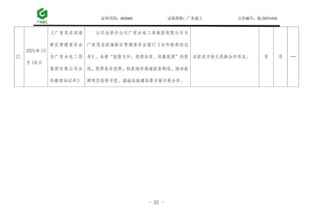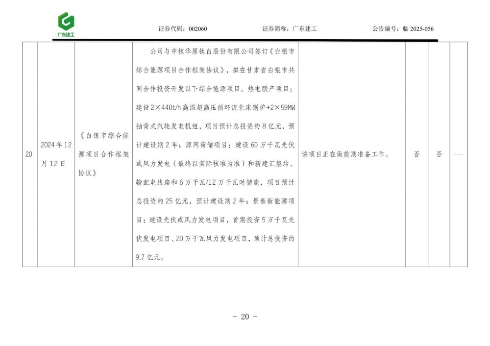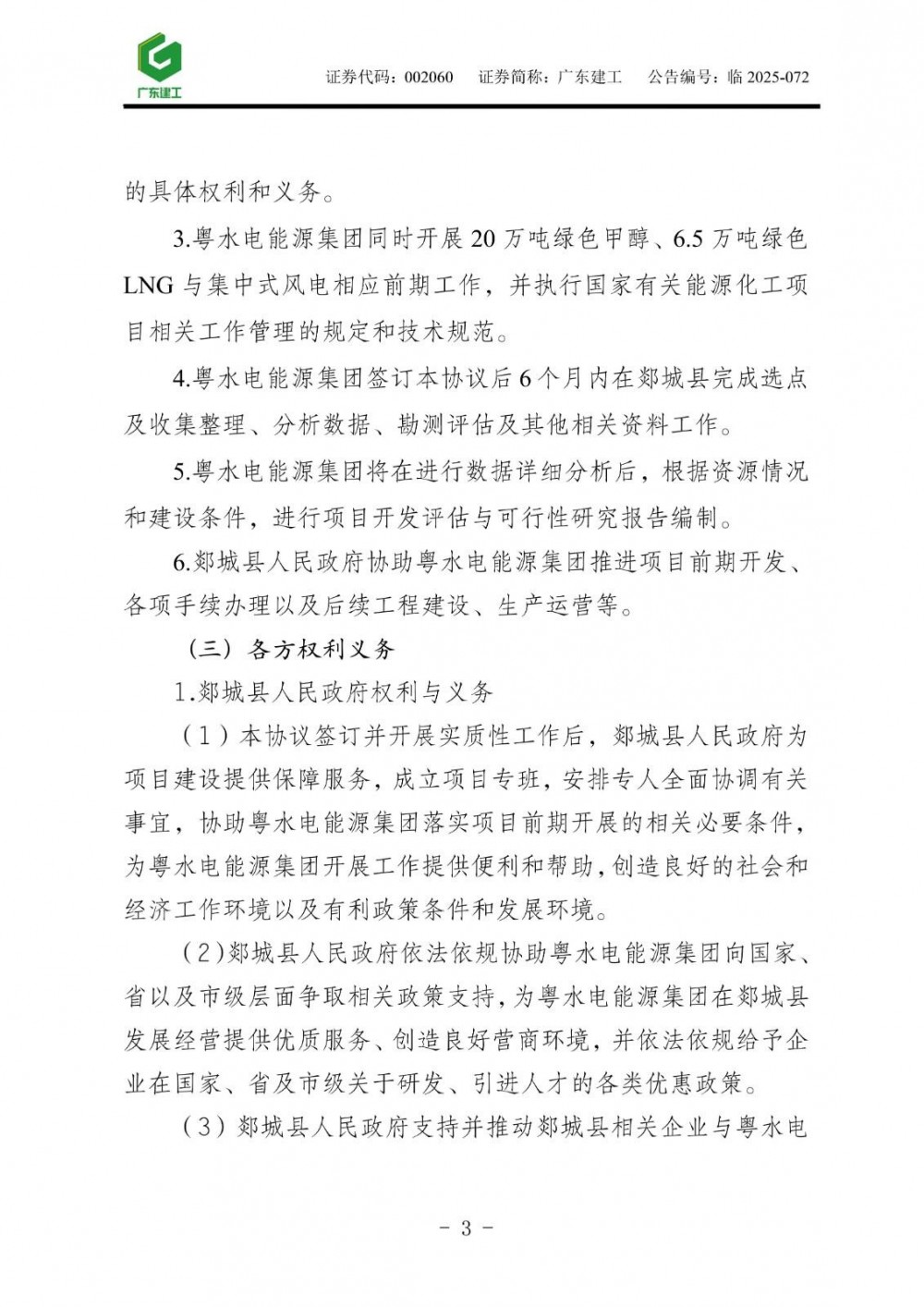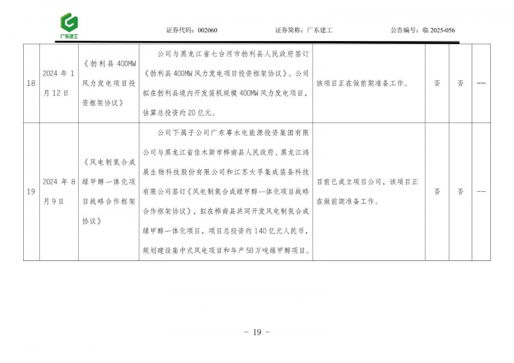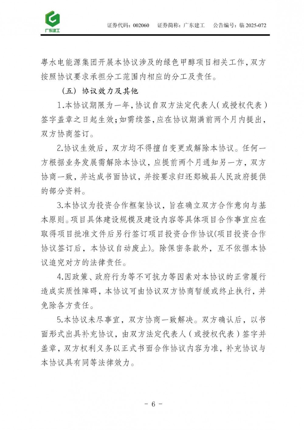 公告顯示,12月26日,廣東建工全資孫公司廣東粵水電能源投資集團有限公司與山東省臨沂市郯城縣人民政府在臨沂市簽訂《綠色甲醇項目投資合作框架協議》,擬在臨沂市郯城縣投資建設綠色甲醇、綠色LNG及集中式風電項目。