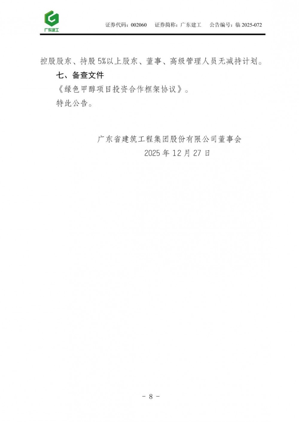 12月27日,廣東省建筑工程集團股份有限公司發布關于下屬子公司簽訂綠色甲醇項目投資合作框架協議的公告。