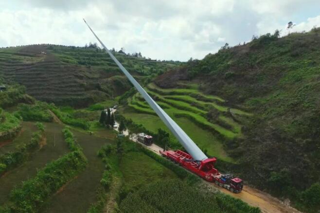 技術突破是該項目攻堅的硬核支撐,作為云南首個10兆瓦大容量機組山地風電項目,面臨大機組建設經驗不足的行業難題,加之現場雨季綿長、極端天氣頻發、沿途高速塌方、葉片發運地大雪、山地道路狹窄崎嶇等客觀因素,風機大件運輸面臨嚴峻考驗。為妥善解決以上難題,該項目迅速成立技術攻堅小組,反復踏勘優化運輸路線、定制專項運輸方案,破解山地大件運輸瓶頸;針對雨季施工痛點,制定專項施工預案,定期巡視路段排查塌方、山體滑坡等突發情況,搶抓晴好窗口期高效推進基礎澆筑、風機吊裝作業,協調多地政府部門臨時拆除障礙、加固路基。同時,借鑒行業先進經驗,結合該項目實際優化大機組安裝調試工藝,成功補齊技術短板,實現施工質量與建設進度雙提升。