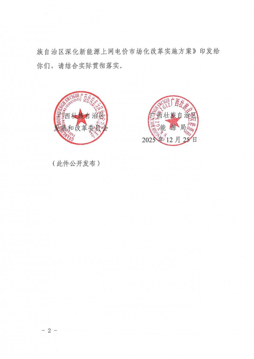 風電頭條獲悉,12月29日,廣西壯族自治區發展和改革委員會 廣西壯族自治區能源局發布關于印發《廣西壯族自治區深化新能源上網電價市場化改革實施方案》的通知。