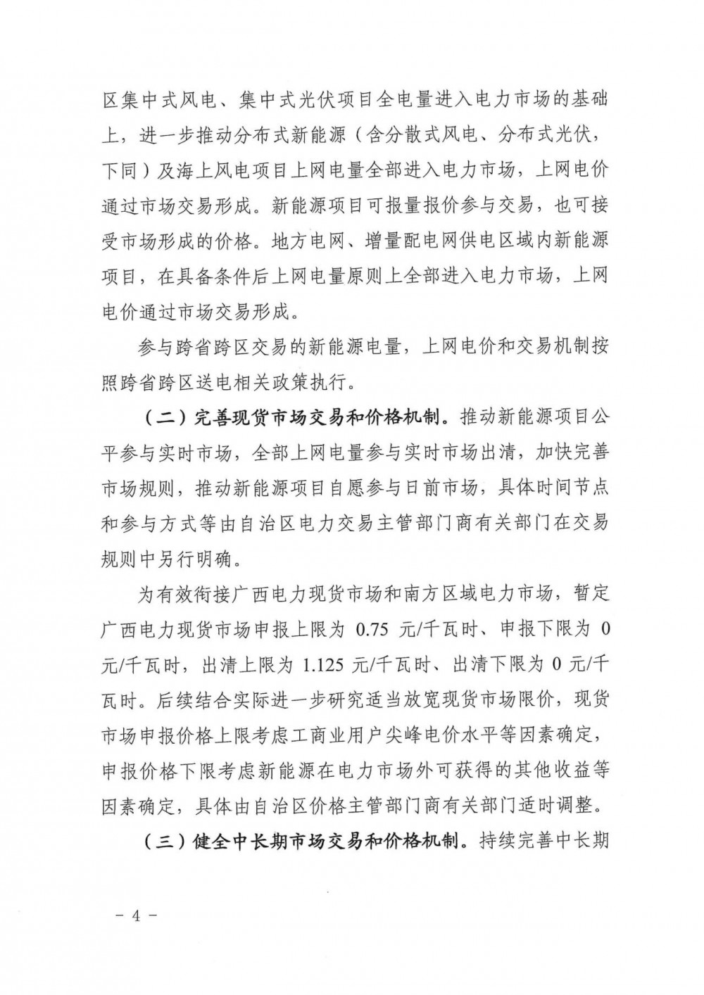 做好新能源可持續發展價格結算機制與廣西電力市場交易政策的有效銜接,對已進入電力市場的新能源項目實行過渡政策。