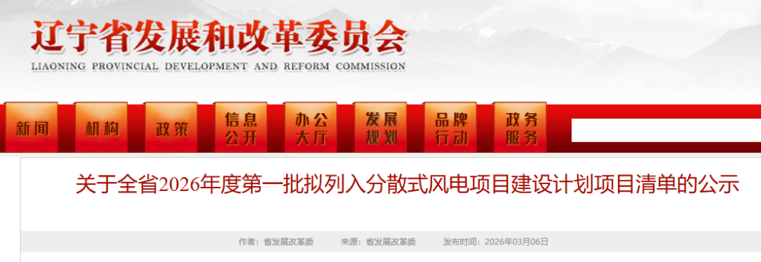 3月6日,遼寧2026年第一批擬列入分散式風電項目建設計劃項目清單公示。