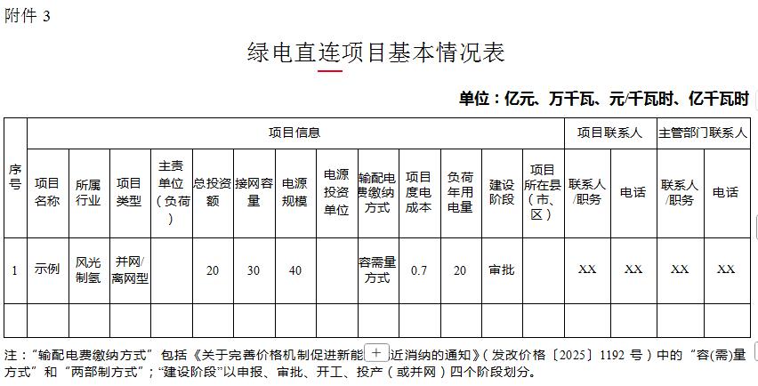 3. 綠電直連項目基本情況表