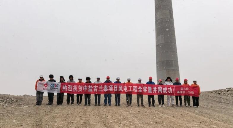 3月13日16時46分,由中國能建中電工程華東院總承包的中鹽吉蘭泰氯堿化工有限公司燃煤自備電廠可再生能源替代項目(以下簡稱中鹽項目)成功實現全容量并網發電,順利進入試運行階段。該項目是華東院首個風光儲輸一體化可再生能源替代示范項目,也是華東院首個全容量并網的山地混塔風電項目。