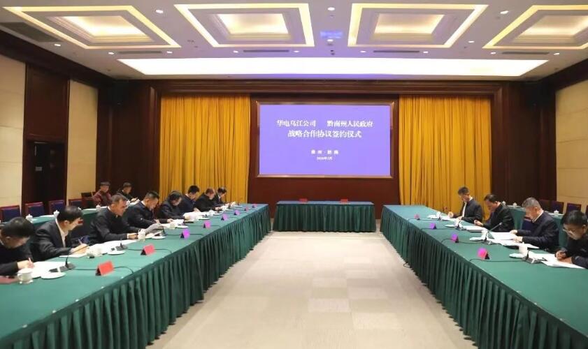 3月20日華電烏江公司總經理、副董事長、黨委副書記龍治安在都勻拜會黔南州委副書記、州人民政府州長龍強,共同出席華電烏江公司與黔南州人民政府戰略合作協議簽約儀式。黔南州人民政府副州長祖自銀,公司副總經理、黨委委員樊勝代表雙方簽署協議。公司副總經理、黨委委員趙剛參加。