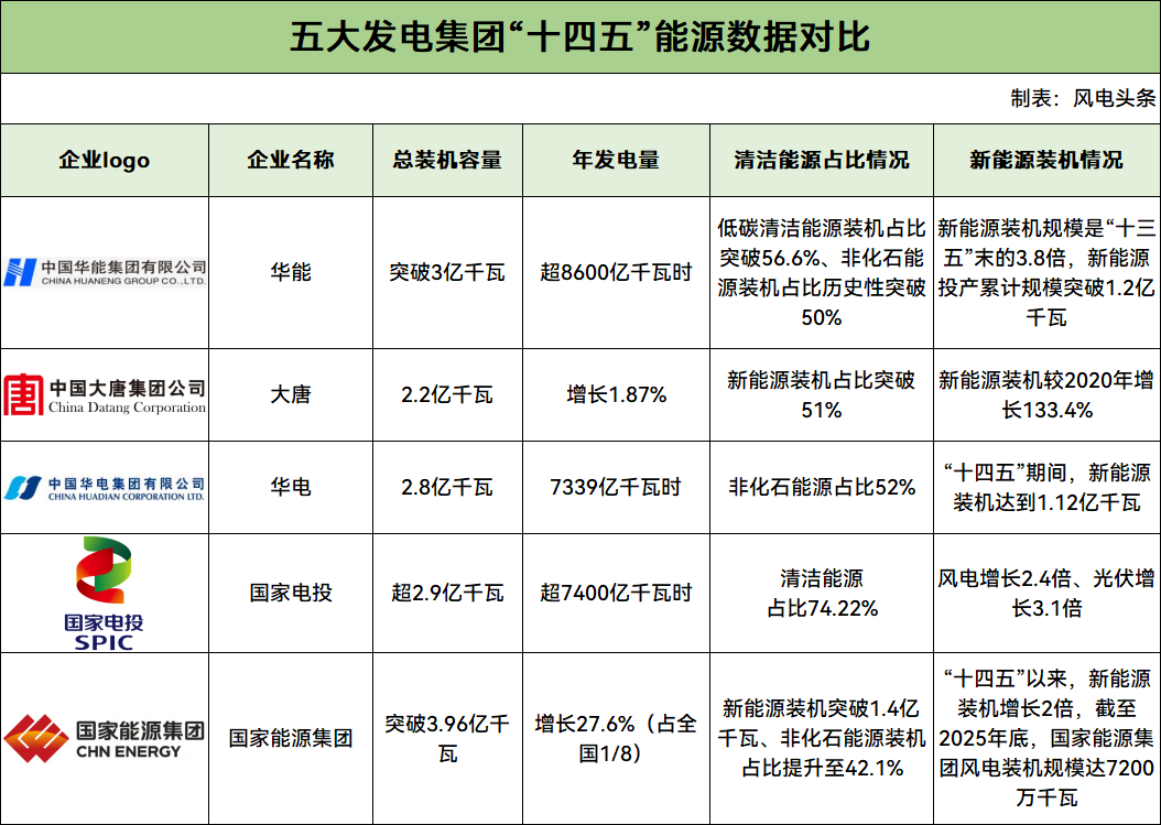 作為能源領域的核心“國家隊”,五大發電集團的戰略動向,始終是風電行業的風向標。“十四五”期間,它們在風電賽道上跑出的差異化路徑——既書寫了自身的轉型成績單,也勾勒出“十五五”風電行業的發展藍圖。