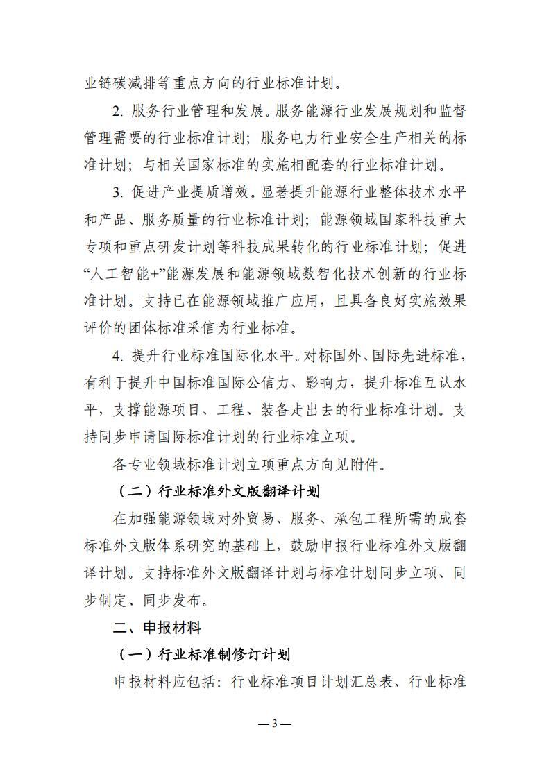 文件指出,立項重點,緊密圍繞構建新型能源體系工作任務,保障能源安全和綠色低碳轉型,促進能源新技術、新產業、新業態發展,突出重點領域和關鍵技術要求,提出能源行業標準計劃。對于具有一定應用前景但尚在發展的技術或變化較快的新產業、新業態、新模式,探索通過標準化指導性技術文件予以支持。鼓勵民營企業、外資企業等各類主體參與標準制修訂工作。支持對標國際先進,立足行業發展實際,推動國際標準和能源領域標準互促轉化,推進標準體系兼容。