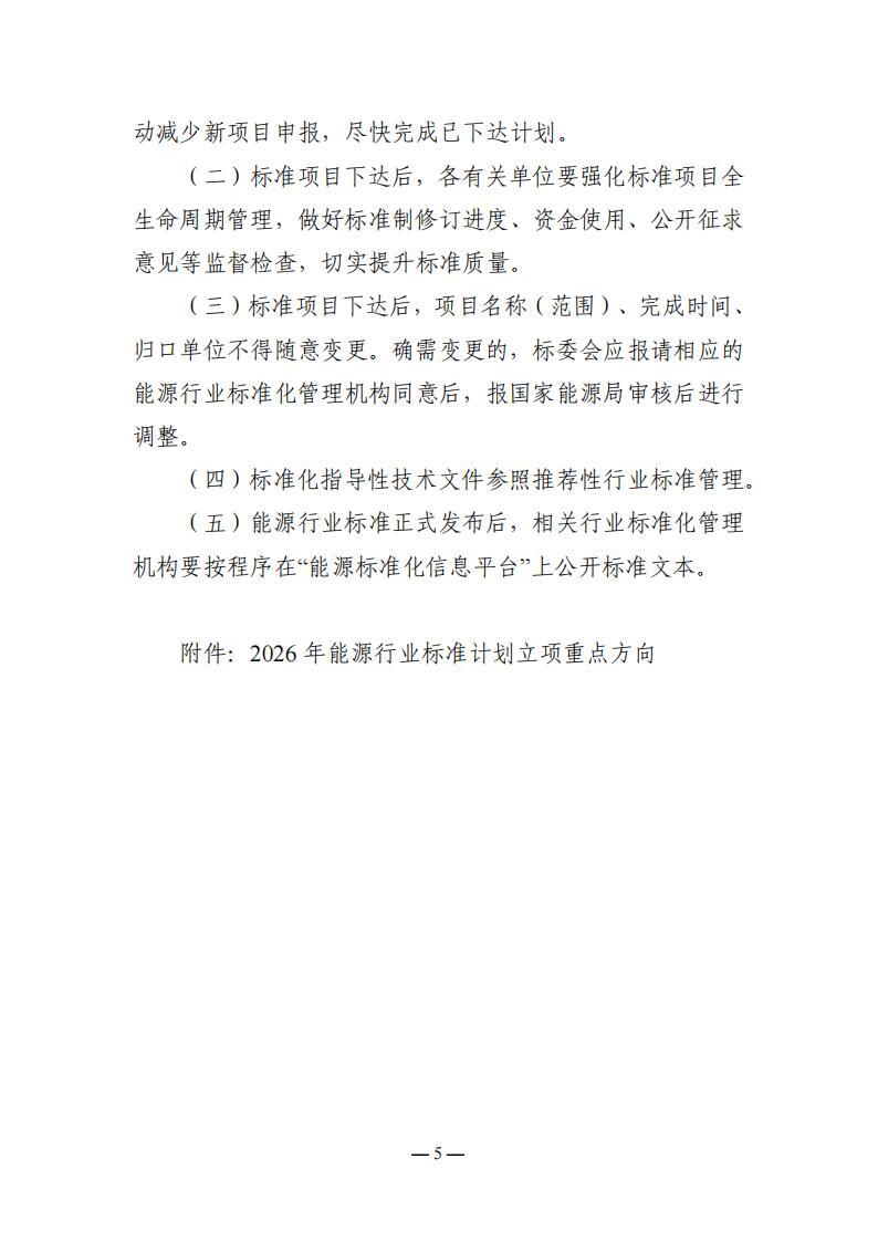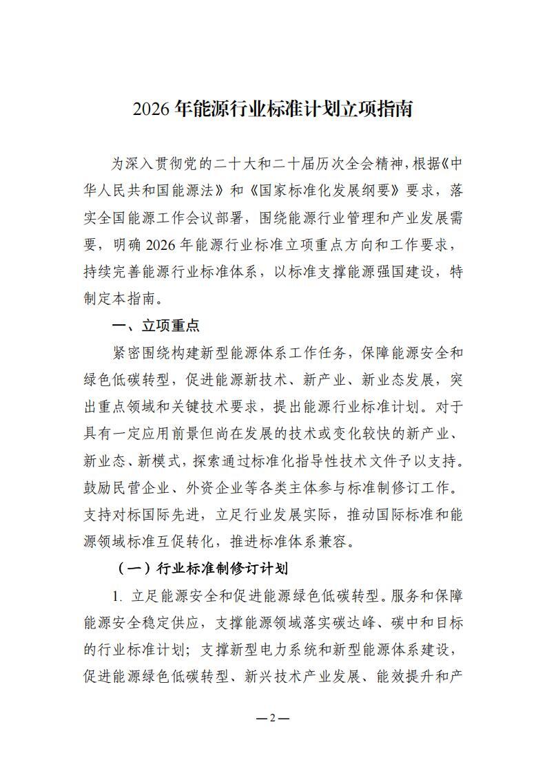 國家能源局綜合司關于印發《2026年能源行業標準計劃立項指南》的通知