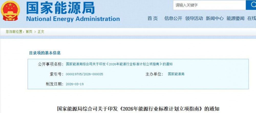 3月24日,國家能源局綜合司關于印發《2026年能源行業標準計劃立項指南》的通知。