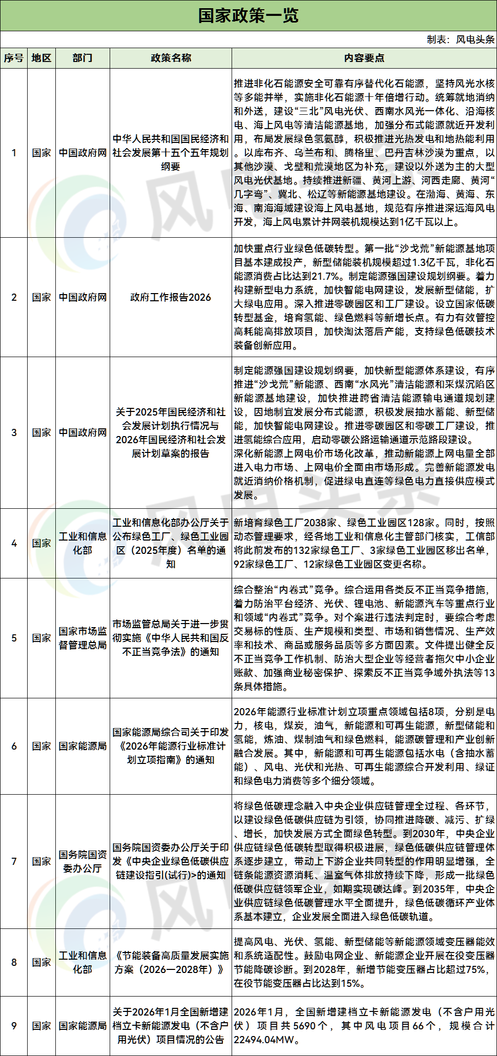 2026年3月31日,風電頭條對2026年3月份國家及地方風電政策進行了梳理,共38條。其中,國家政策9條,地方政策29條。
