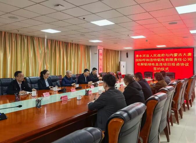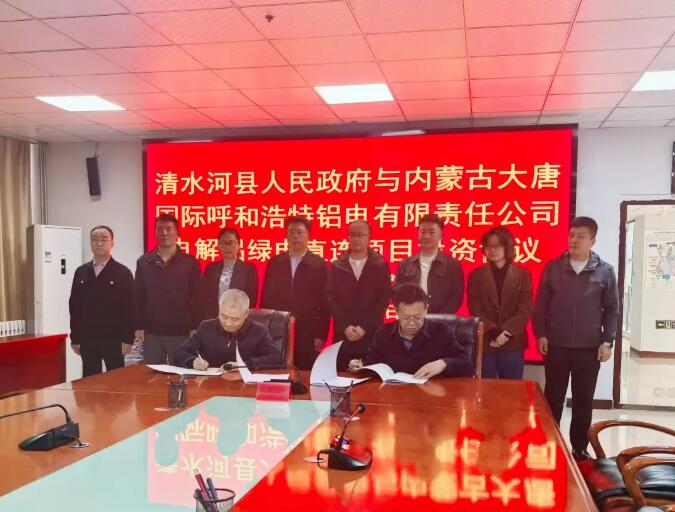 2026年3月27日,在清水河縣政府1號會議室,大唐呼鋁電公司黨委書記、執行董事兼總經理韓國宏與清水河縣主管新能源副縣長趙建軍正式簽訂大唐呼鋁電公司電解鋁綠電直連項目投資合作協議。