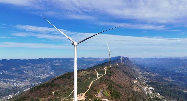 在貴州省銅仁市印江縣西部的群山之巔,一座座巨型風力發電機組如白色森林般矗立,巨大的葉片在云霧中迎風轉動,將山間凜冽的寒風轉化為清潔的電力。